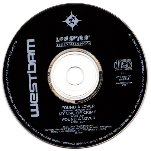 Westbam - S 1992 - Found A Lover & My Life Of Crime (ETC 143 CD)